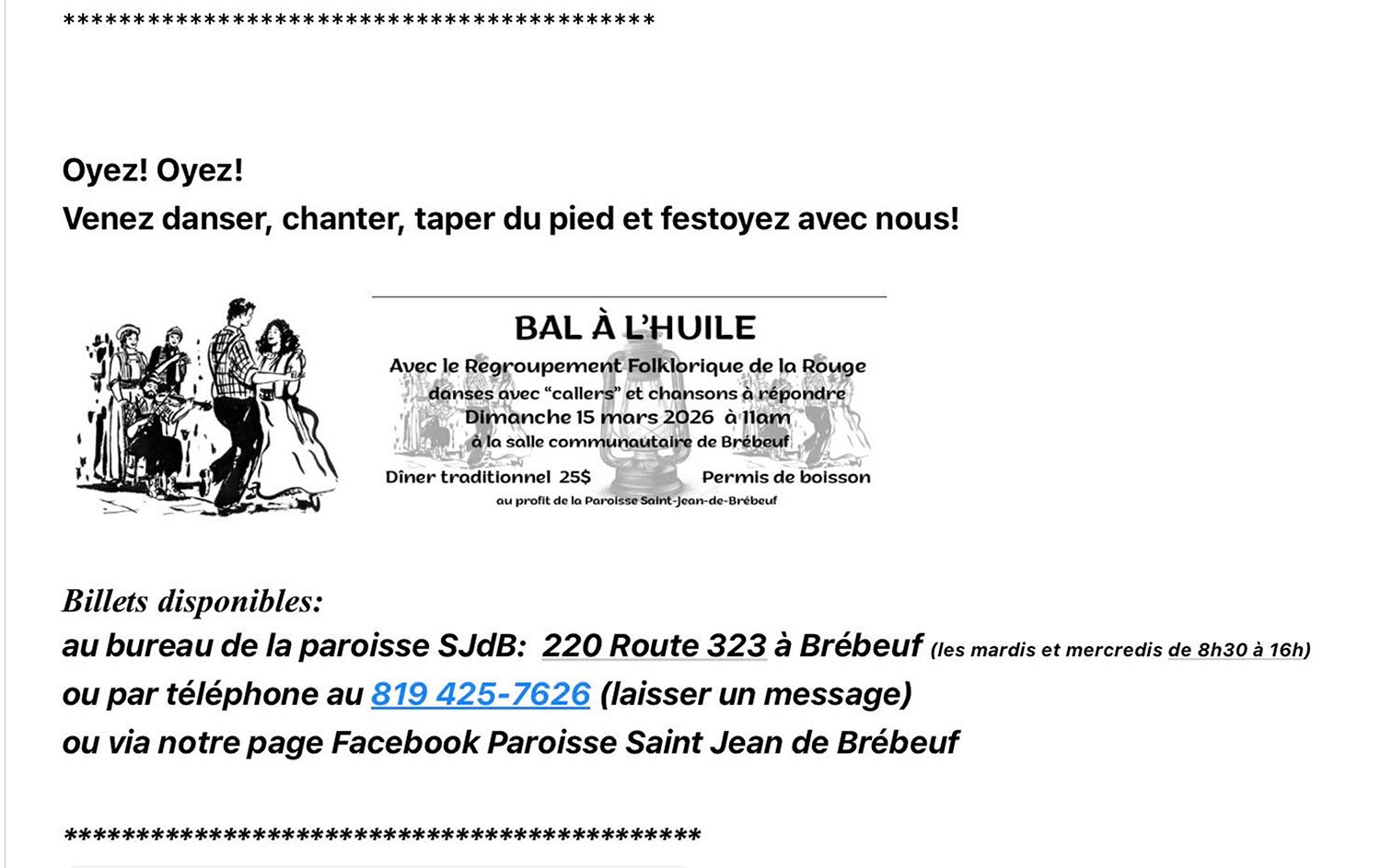 Bal à l’huile Brébeuf 2026