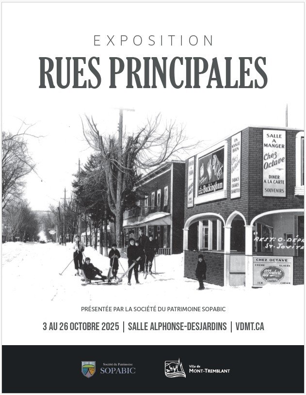Chaque ville, village, canton ou simple bourgade a sa rue Principale. Venez revivre l’exposition 2025 de la SOPABIC et vous remémorez le passé de ces commerçants, restaurateurs, hôteliers, barbiers, forgerons d’autrefois de 7 lieux autour de Saint-Jovite.