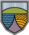 La partie centrale (V inversé violet) comme un chemin, nous rappelle la route des pionniers et celle du chemin de la colonisation. Nous retrouvons cette route entre les plans d’eau et les champs. C’est également le chemin de fer et l’aéroport de Wheeler Air Lines qui ont contribué à l’économie de la région.