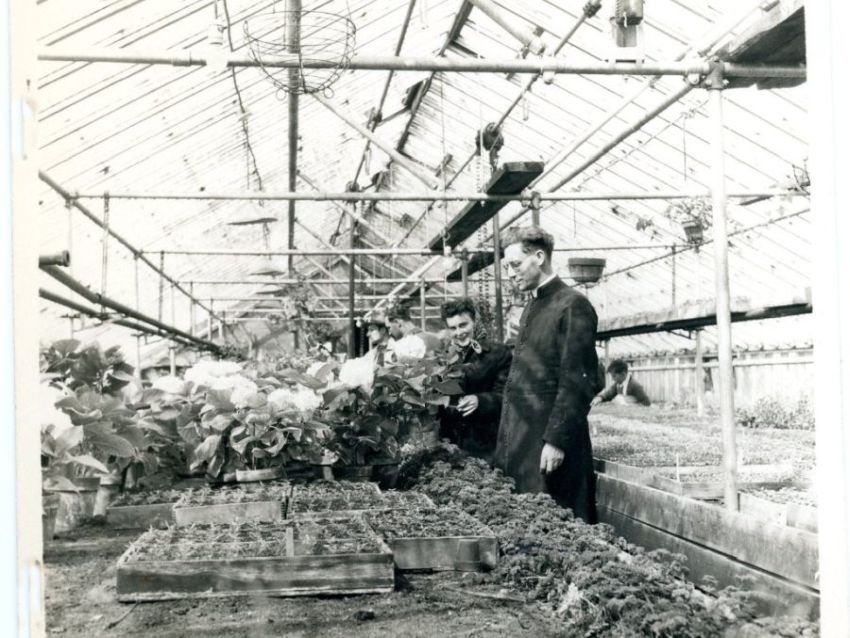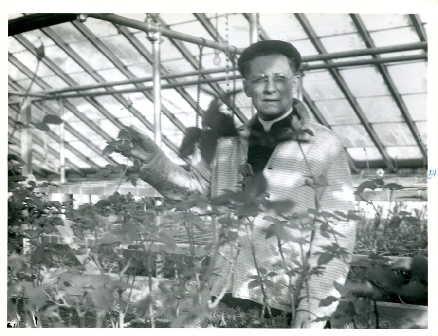 Curé Charles Hector Deslauriers dans sa serre. (Photo SOPABIC)