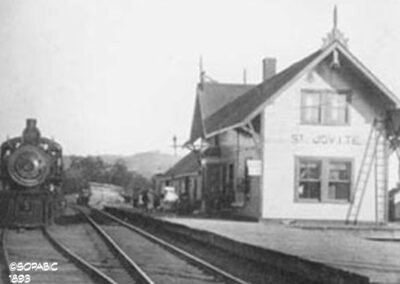 Le 26 octobre 1893 marque une date importante dans les annales du village. En ce jour d’inauguration officielle du trajet du chemin de fer jusqu’à la Chute-aux-Iroquois (actuellement Labelle), personnalités et villageois se sont donné rendez-vous à la nouvelle gare à l’architecture néogothique. Tous groupés sur le quai de bois neuf, endimanchés, fébriles, ils pérorent et parlent de prospérité. « Voilà réalisé le rêve de notre regretté curé Labelle », murmure le curé Ouimet. Dans un coin, le gérant et les ingénieurs de la Perley discutent avec le maire et projettent d’ajouter des résidences à leur bureau près de la gare. « Enfin, nous transporterons notre bois scié plus rapidement vers les États-Unis », se réjouit le gérant Graham, en tirant une longue pipée de satisfaction.