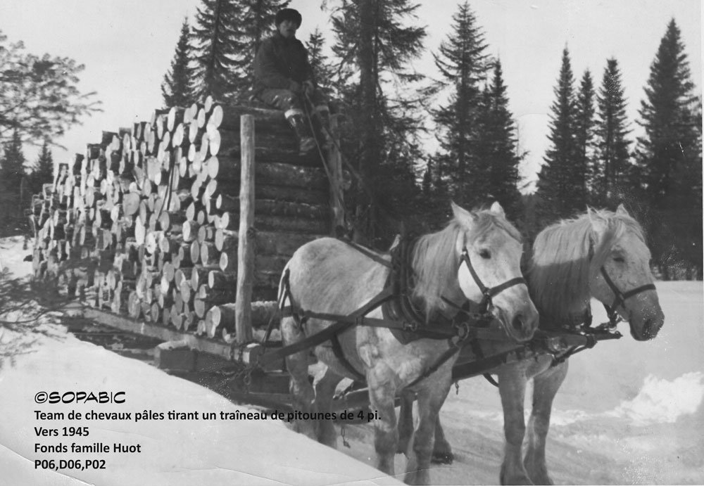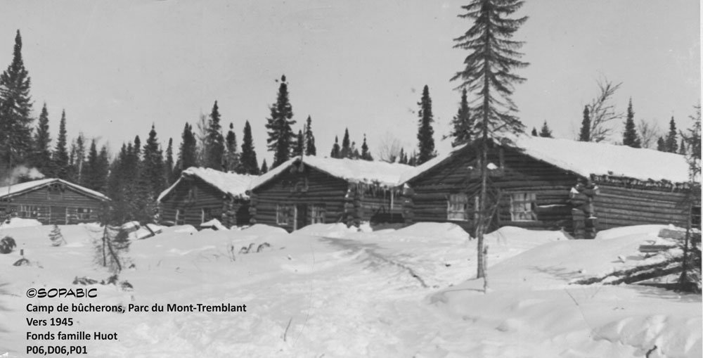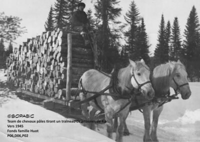 L’hiver est quasi synonyme de bûchage pour les hommes de ces générations. Certains à la solde de grandes compagnies forestières, d’autres à leur propre compte ou pour leurs besoins personnels. S’ils ne sont pas engagés, ils forment de petits groupes de deux ou trois pour s’entraider et surtout pour assurer leur sécurité en forêt. S’ils montent aux chantiers, ils logent à plusieurs dans des camps en bois rond et les repas sont cuisinés par le « cook » de service.
