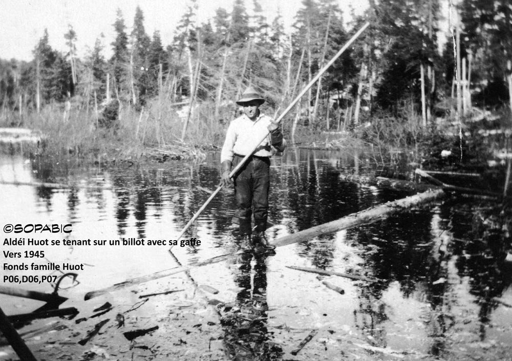 Son travail commence là où celui des bûcherons s’est arrêté, sur les chemins de neige construits sur La Diable ou un de ces tributaires. Des montagnes de billots ou de « pitounes » s’y entassent et le défi est de les acheminer aux différents moulins à scies de la région en utilisant la force de l’eau vive.