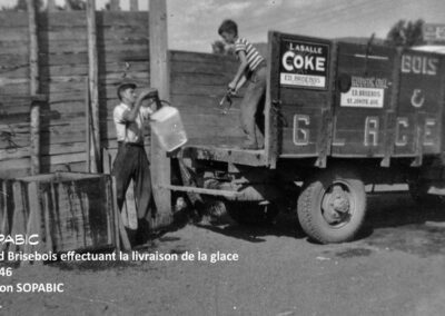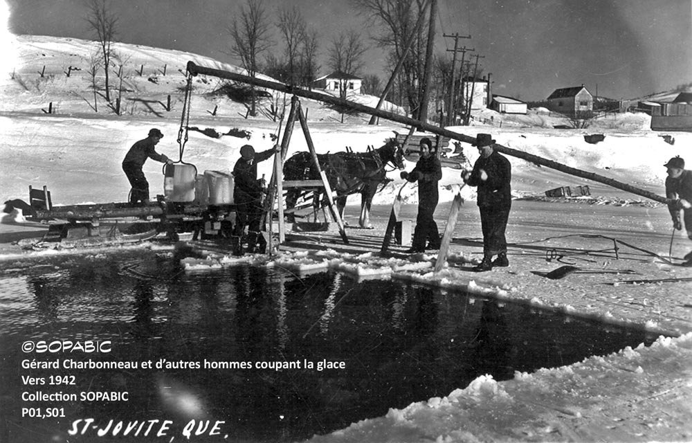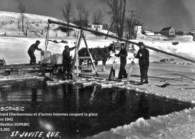 La réserve de glace se bâtit donc pendant la saison froide sur la rivière ou le ruisseau le plus proche et est emmagasinée recouverte de bran de scie. La plupart des cultivateurs le font pour leur usage domestique personnel mais à partir des années 1930, certains commencent à en vendre à d’autres habitants. À Saint-Jovite, Édouard Brisebois crée une entreprise pour vendre des blocs de glace qu’il opère de 1946 à 1950.