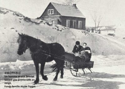 Le dimanche, toute la famille se fait belle, le père a « astiqué » ses chevaux et son boghei ou sa carriole sont fin prêts pour transporter tout ce beau monde à l’église d’abord, dévotions obligent, puis, chez les grands-parents pour le dîner dominical traditionnel. Après, les discussions, les tablées de cartes et le p’tit caribou ont raison de l’après-midi. Puis, la marmaille qui s’en donne à cœur-joie dehors est rassemblée et les fidèles chevaux ramènent toute l’équipée à la maison. Lors de soirées plus « arrosées », pas besoin de chauffeur désigné, les bêtes connaissent le chemin du retour et leur protégé, endormi ou hilare, se retrouve malgré lui à bon port!