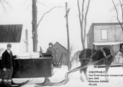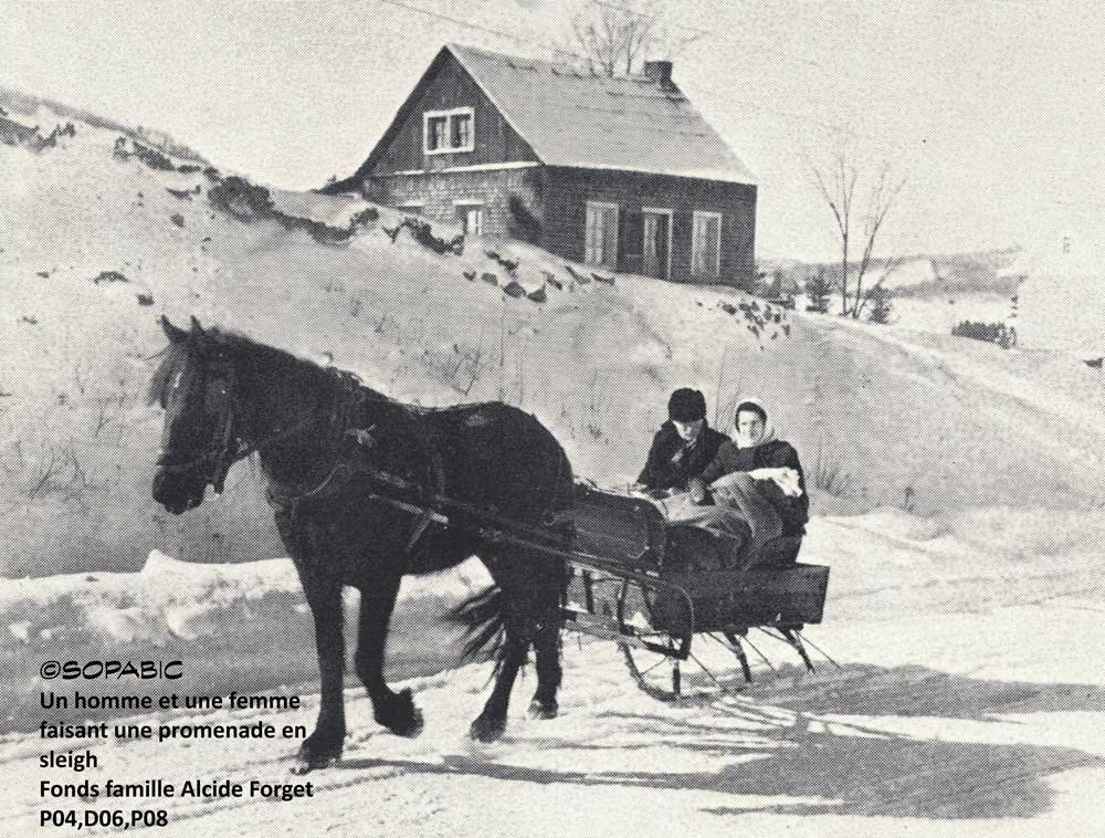 Comme à chaque époque, la représentation du changement fait peur. Les chevaux sont tellement pratiques et versatiles! Dans les champs comme sur les chemins, ils participent aux labours, au transport du foin, du bois, de l’eau d’érable… conduisent les familles à l’église, chez la parenté, en pique-nique. Et quelle sécurité à la fin d’une soirée de savoir que vos fidèles chevaux vous ramèneront au bercail quel que soit votre état!