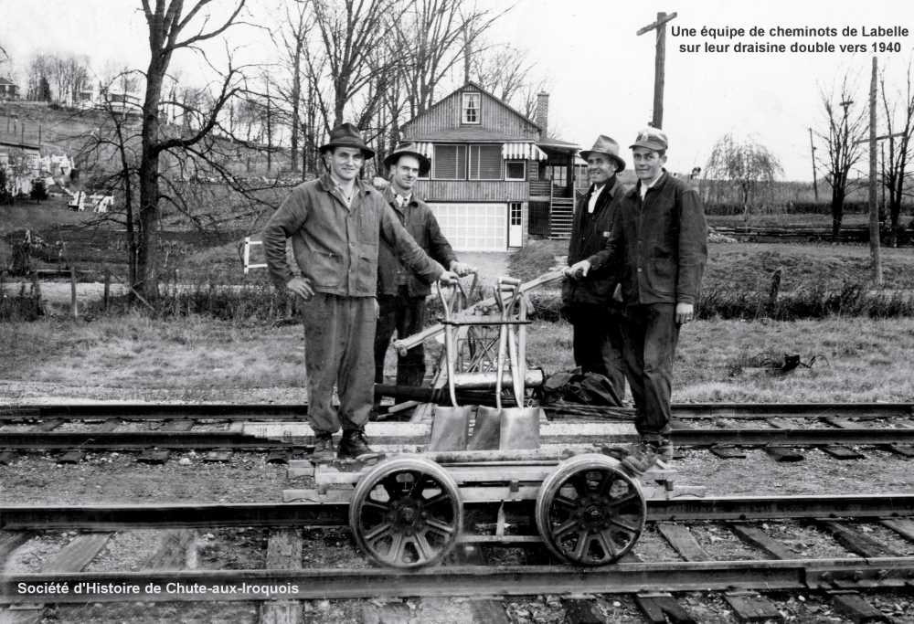 Une dernière, sur laquelle pose, vers 1940, une équipe de cheminots de Labelle dédiée à l’entretien de la voie ferrée.