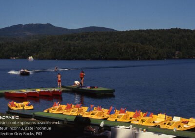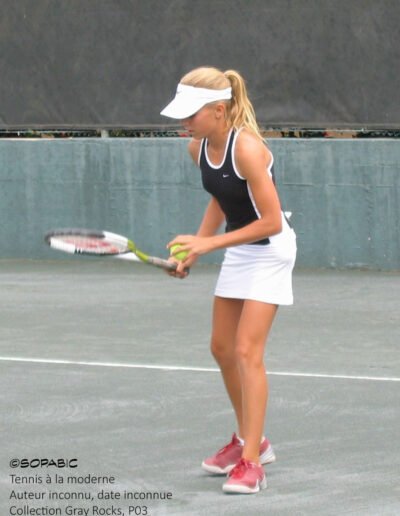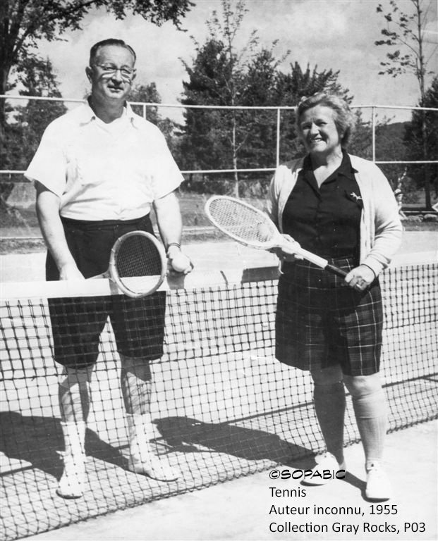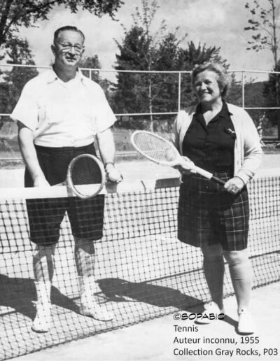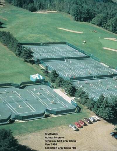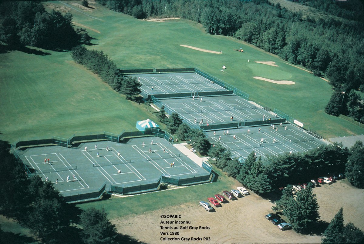 Bien sûr avant les années 1950, la pratique du tennis est déjà commencée… il s’agit d’une activité parmi d’autres. À partir du milieu du siècle jusqu’aux années 1970, elle devient plus en plus populaire et mérite d’être « organisée » au même titre que le golf ou le ski. Le Gray Rocks améliore les terrains déjà existants et en ajoute quelques-uns. Comme pour les autres sports, l’hôtel engage des moniteurs qualifiés qui articulent des sessions de cours de base et aussi des leçons privées pour ceux qui veulent parfaire leur jeu.