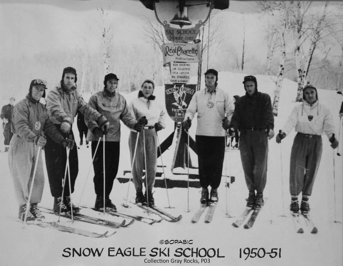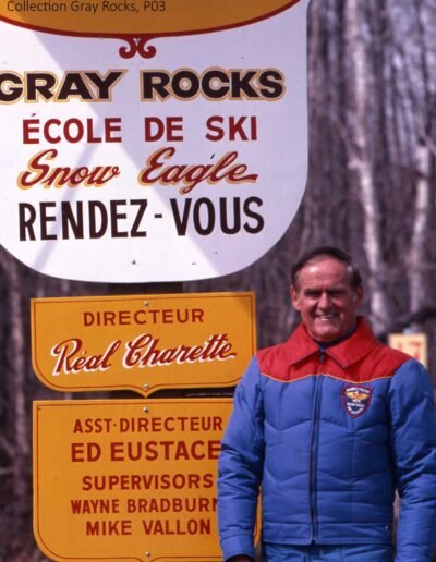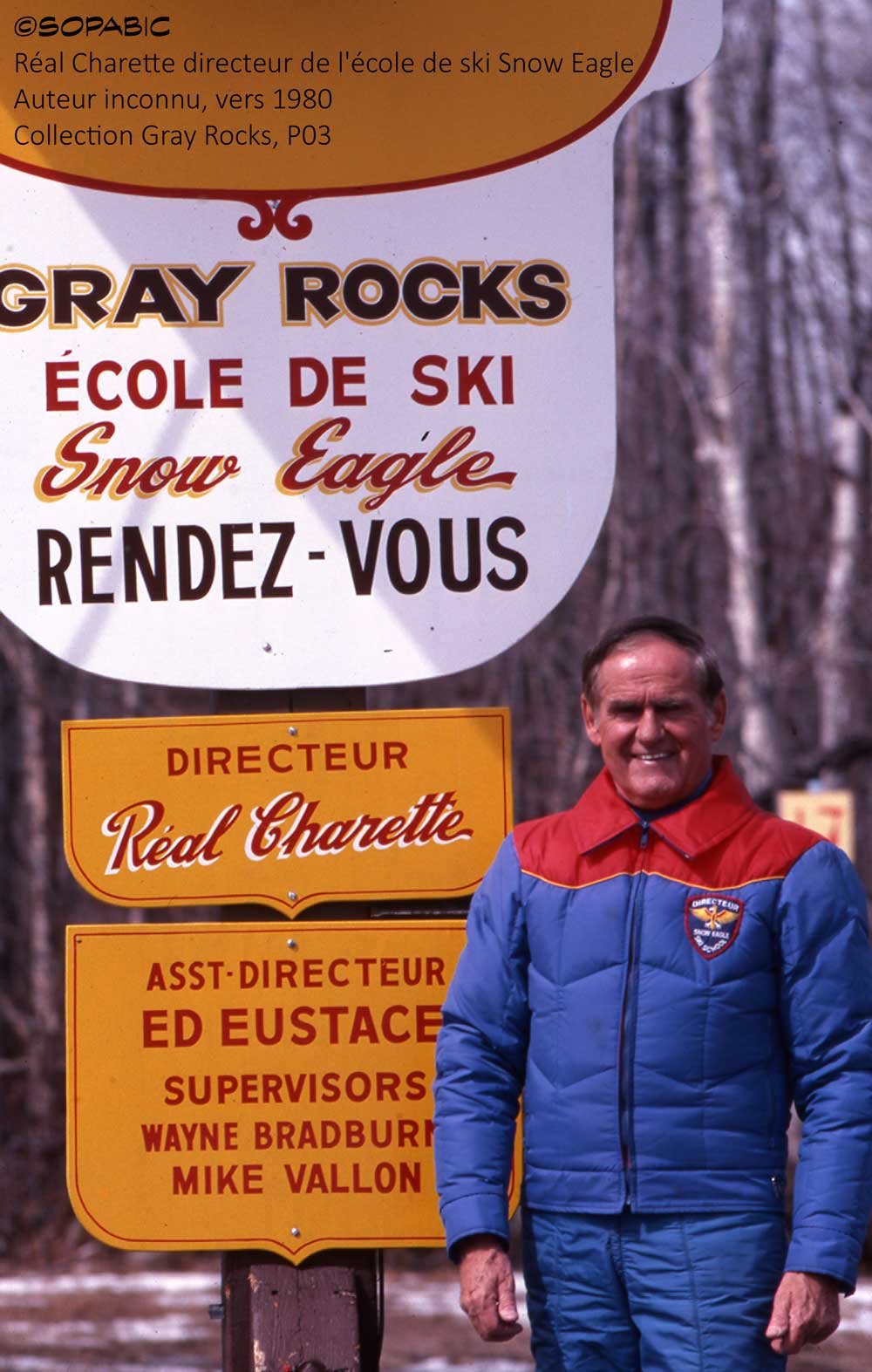 En 1948, Réal Charrette est le premier Canadien à accéder au poste de directeur d’une école de ski, la Snow Eagle Ski School, l’école de ski du Gray Rocks. Il la dirigera pendant plus de trente ans.