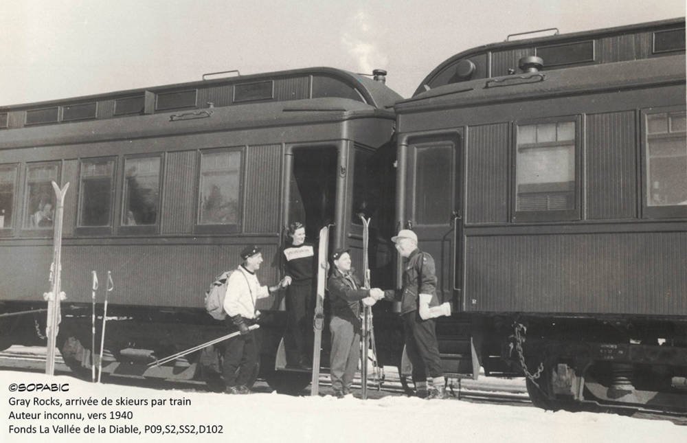 Les premiers « trains des neiges » amènent de nombreux skieurs dans les Pays-d’En-Haut. Si plusieurs descendent à Shawbridge-Prévost, d’autres poursuivent leur trajet pour des séjours en hôtels comme au Gray Rocks à Mont-Tremblant.