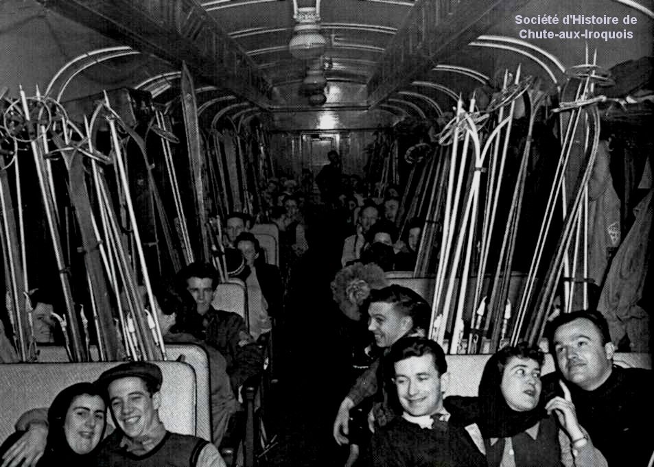 Le populaire P’tit Train du Nord connaît ses heures de gloire entre 1930 et 1950. Même si la route est accessible l’hiver à partir de 1937, les gens de Montréal continuent d’utiliser le train pour venir faire du ski dans les Laurentides. Pour l’ambiance festive qui s’y installe, pour le plaisir de s’y retrouver entre amis et souvent pour la musique et les chansons qui y fusent pendant le trajet.